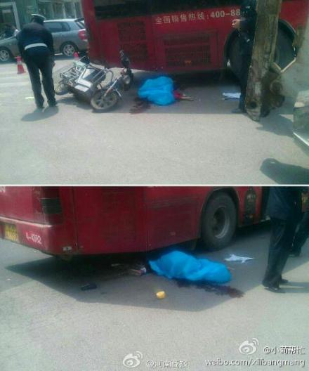 鄭州車禍:4月1日鄭州一名11歲女孩被公交車碾壓致死 微博圖片