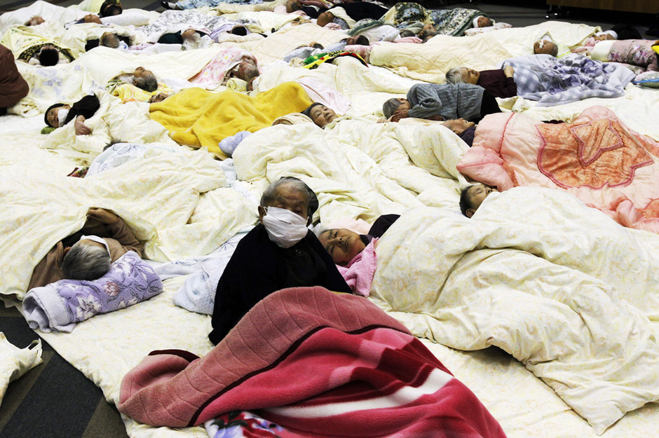3月13日,日本福島郡山市,被疏散的居民聚集到一個避難所。3.11地震,日本福島核電站爆炸,日本核電站機組爆炸190人受輻射。