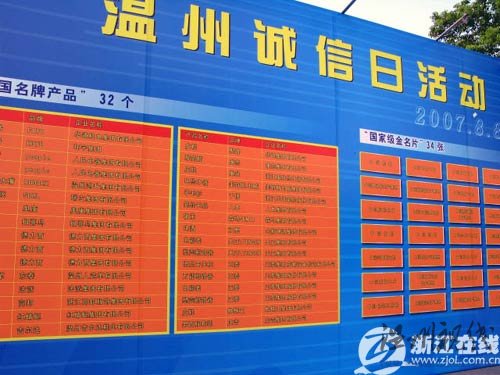 在今晚的“溫州誠信日”活動上,以南存輝、王振滔代表溫州50家擁有中國馳名商標的民營企業鄭重發出了《誠信宣言》,喊出了“誠信鑄就品牌,品牌促進跨越”的最強音。