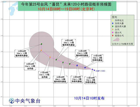 臺風薔琵最新消息:每年的第25號臺風都是比較晚了,2015年第25號臺風薔琵生成于10月14日凌晨2點,目前,臺風薔琵和臺風巨爵形成雙臺風,未來路徑較難預測。