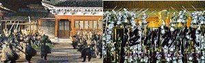 宮庭門外的陣勢有復(fù)制《黃金甲》(右)之嫌
